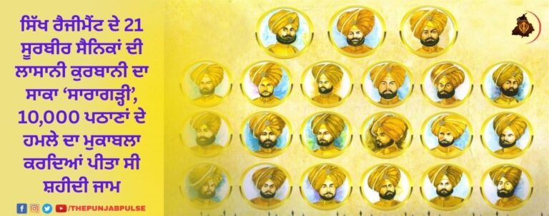 10,000 ਪਠਾਣਾਂ ਦੇ ਹਮਲੇ ਦਾ ਮੁਕਾਬਲਾ ਕਰਦਿਆਂ ਪੀਤਾ ਸੀ ਸ਼ਹੀਦੀ ਜਾਮ ਇਸ ਤਰ੍ਹਾਂ ਉਨ੍ਹਾਂ ਭਾਰਤ ਦੇ ਇਤਿਹਾਸ ਵਿੱਚ ਇਕ ਨਵੇਂ ਕਾਂਡ ਦੀ ਸਿਰਜਣਾ ਕੀਤੀ, ਜੋ ਕਿ ਆਉਣ ਵਾਲੀਆਂ ਪੀੜ੍ਹੀਆਂ ਲਈ ਪ੍ਰੇਰਨਾ ਸਰੋਤ ਹੈ। ਉੱਤਰੀ-ਪੱਛਮੀ ਸਰਹੱਦੀ ਸੂਬੇ (ਜਿਹੜਾ ਕਿ ਹੁਣ ਪਾਕਿਸਤਾਨ ਵਿਚ ਹੈ) ਵਿਚ 1897 ਵਿਚ ਜਿਹੜੀ ਬਗਾਵਤ ਉੱਭਰ ਰਹੀ ਸੀ, ਦੀ ਅਗਵਾਈ ਮੁੱਲਾ … [Read more...] about ਸਿੱਖ ਰੈਜੀਮੈਂਟ ਦੇ 21 ਸੂਰਬੀਰ ਸੈਨਿਕਾਂ ਦੀ ਲਾਸਾਨੀ ਕੁਰਬਾਨੀ ਦਾ ਸਾਕਾ ‘ਸਾਰਾਗੜ੍ਹੀ’