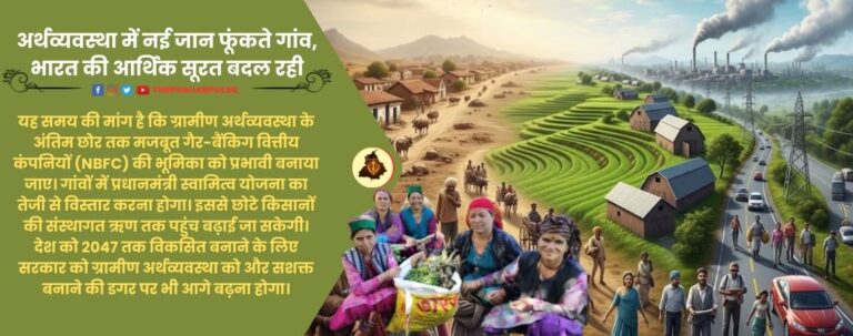 यह समय की मांग है कि ग्रामीण अर्थव्यवस्था के अंतिम छोर तक मजबूत गैर-बैंकिग वित्तीय कंपनियों (NBFC) की भूमिका को प्रभावी बनाया जाए। गांवों में प्रधानमंत्री स्वामित्व योजना का तेजी से विस्तार करना होगा। इससे छोटे किसानों की संस्थागत ऋण तक पहुंच बढ़ाई जा सकेगी। देश को 2047 तक विकसित … [Read more...] about अर्थव्यवस्था में नई जान फूंकते गांव