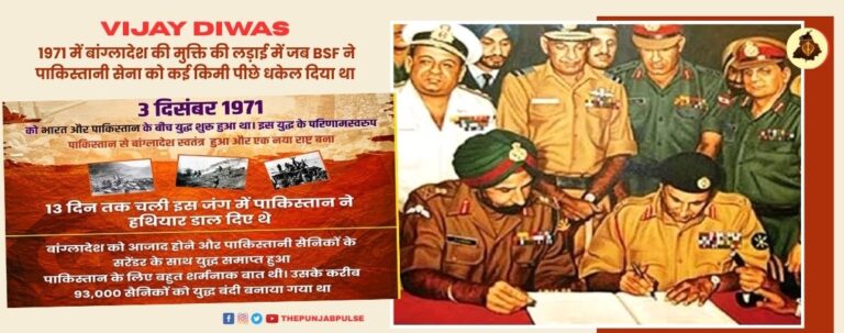 1971 में बांग्लादेश की मुक्ति की लड़ाई में जब BSF ने पाकिस्तानी सेना को कई किमी पीछे धकेल दिया था 17 दिसम्बर, 2025 - देश : 1971 में बीएसएफ के साहस ने देश को पाकिस्तान से जीताने का काम किया था। इसी के साथ कुछ ही दिनों में बनी पीटर फोर्स ने भी पाकिस्तान की सेना को पीछे खदेड़ने का … [Read more...] about Vijay Diwas: 1971 की लड़ाई में BSF के 184 अधिकारियों एवं जवानों का शौर्य