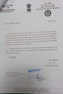 Letter by National Minority Commission to Chief Secretaries of all states: Requesting for update on kin and survivors of the Sikh Genocide