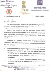 Letter by The National Minority Commission to CMs recommended jobs for Sikh Genocide victims. Similar letters went to CMs of all states